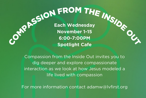 Starting Wednesday, November 1st - a new study, "Compassion from the Inside Out" will be taking place in the Spotlight Café in place of Let's Talk.